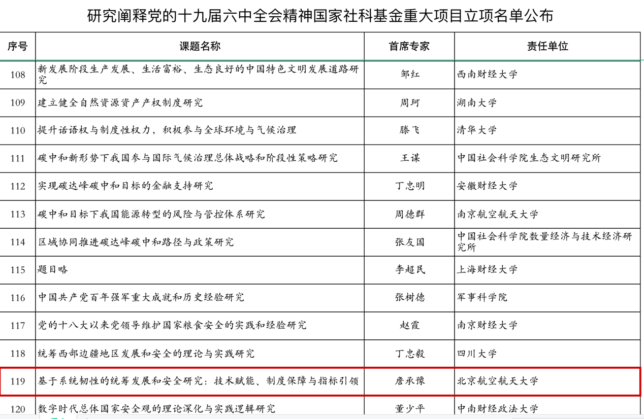 “研究阐释党的十九届六中全会精神”国家社科基金重大项目立项名单正式公布,北京欧美大片ppt免费大全共有1项入选,即人文社会科学学院(公共管理学院)詹承豫教授团队的课题“基于系统韧性的统筹发展和安全研究:技术赋能、制度保障和指标引领”。这是我校国家社科重大项目立项取得的又一次重要突破。