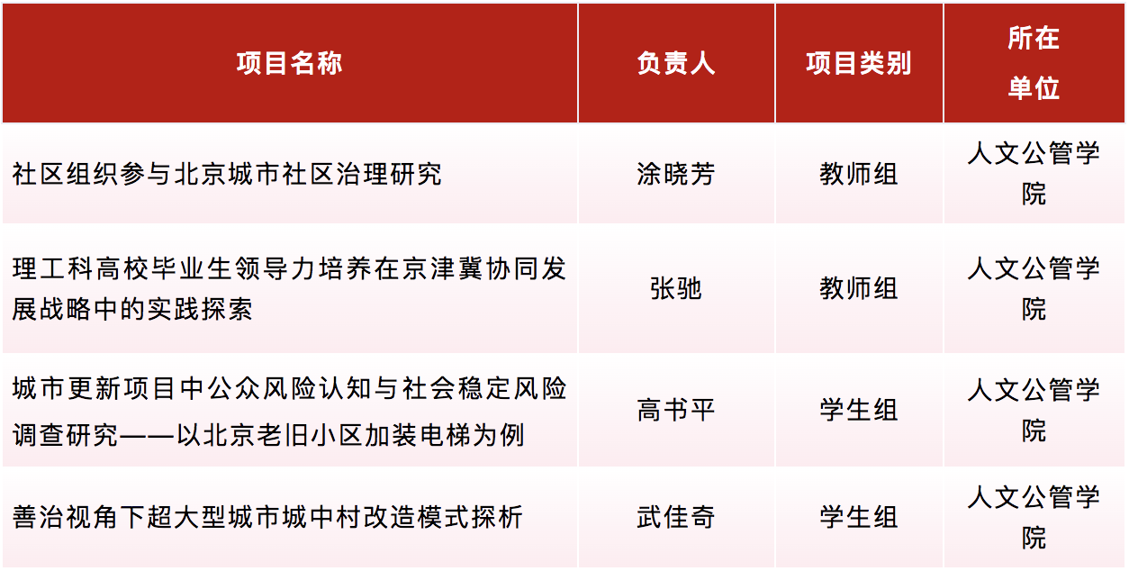 8月15日,中共北京市委教育工作委员会公布了2021年北京高校师生“双百行动计划”优秀项目名单,北京欧美大片ppt免费大全共有7个项目获评优秀项目,其中人文社会科学学院(公共管理学院)4个项目入选优秀项目。