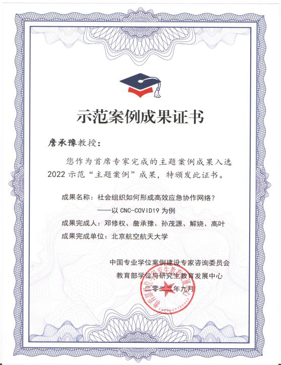 我院副院长詹承豫教授作为首席专家提交的主题案例成果《社会组织如何形成高效应急协作网络?一以CNC-COVID19为例》,主要完成人包括邓修权教授、孙茂源、解饶、高叶等研究生,入选2022年十大示范“主题案例”成果。