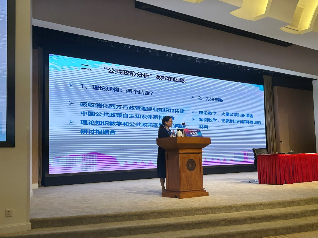 随后,涂晓芳以“推动‘关于中国’的公共政策教学的思考”为主题作专题报告,分享了如何将课程理论知识与前沿问题相结合,如何将教学改革与方法创新有机结合,如何有效落实MPA教学实践环节等内容。她强调,在MPA教学过程中应构建和传播中国的自主知识体系,培养学生的家国情怀和公共精神。