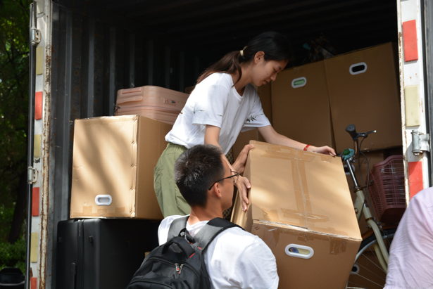 在学校学院的统一组织和安排下,同学们分批搬迁。大家互帮互助、协作配合,顺利完成了装车、发车等搬迁工作。11名志愿者同学参与到客车、货车的押车服务中。