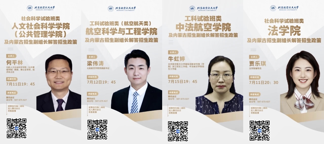 招生组邀请到北航老中青教师、校友、学生,学校专家老师有中国老教授协会理事、北航关工委常务副秘书长、老教授报告团副团长陈志英教授,北航老教授报告团常务副团长郑彦良教授,自动化科学与电气工程学院长江学者任章教授,总务部正处级干部王有洪,学生工作部副部长梁帮龙,材料科学与工程学院党委副书记图们,航空科学与工程学院党委副书记梁伟涛,人文社会科学学院(公共管理学院)副院长陈文博教授、院长助理聂晨副教授、经济系主任何平林教授、高文娟副教授、李根强副教授,人工智能学院副院长刘偲教授,能源与动力工程学院院长助理范雨副教授,计算机学院教师牛虹婷,经济管理学院周建涛副教授、胡鹤老师,数学科学学院团委书记程乾,生物与医学工程学院杨肖副教授,航空发动机研究院副研究员徐天彤、韩啸,网络空间安全学院院长助理张宗洋副教授,集成电路科学与工程学院实验教学中心主任张慧副教授、李栋老师,后勤服务中心赵翌胜老师等,北航校友总会副秘书长黄瑞勇等。他们以深厚的学术造诣和丰富的教育经验,为学生们描绘了一幅幅北航的精彩画卷,点燃了学生们心中的梦想之火。