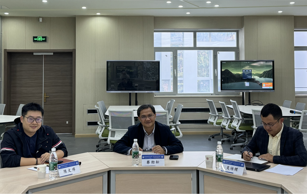 蔡劲松院长对王强院长和张颖副院长的到来表示热烈欢迎,并从学院学科建设、师资队伍及实验室建设等方面介绍了学院整体情况。随后,吴培熠老师介绍了公共管理系统工程实验室使用的基本情况。