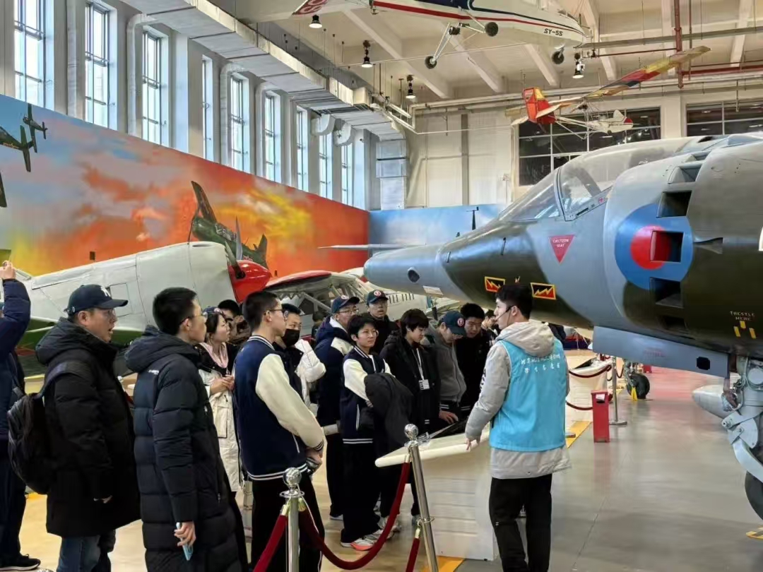在北京航空航天博物馆,讲解员带领大家参观了长空逐梦、银鹰巡空、神舟问天和空天走廊4个展区,并详细介绍了“北京一号” 轻型旅客机等珍贵文物。看到丰富多样的展品,到访师生深受震撼,并认真学习了航空航天历史与知识。