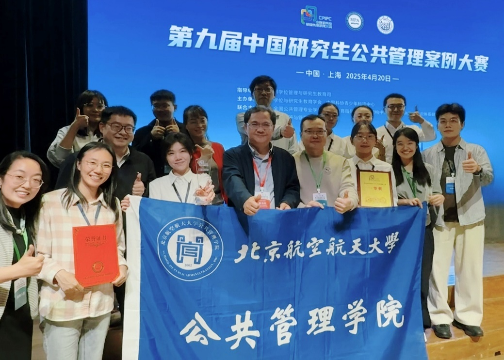 刚刚落幕的第九届中国研究生公共管理案例大赛上,北航人文公管学院还获得调研报告一等奖、最有价值队员(陈梦祥)、最佳指导教师(陈文博、张路蓬)、2项优秀奖(指导教师分别为刘亚娜和陈文博)和优秀组织单位等荣誉。