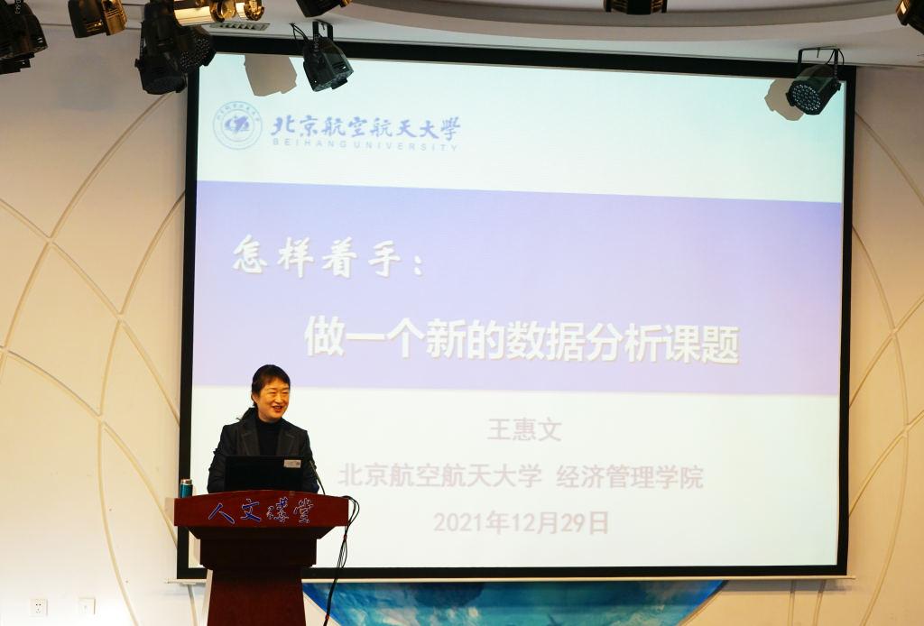 12月29日,北航“人文讲堂”学术前沿系列讲座在人文社会科学学院(公共管理学院)人文讲堂举行,本次讲座邀请了北京欧美大片ppt免费大全王惠文教授作题为“怎样着手做一个新的数据分析课题”的学术前沿讲座。科技部高技术中心技术总师史冬梅,学院院长蔡劲松教授,经济系韩霞教授以及科技部高技术中心-北航公共管理学院联合培养的5名博士后和100余名研究生参加本次讲座。讲座由学院党委副书记张驰主持。