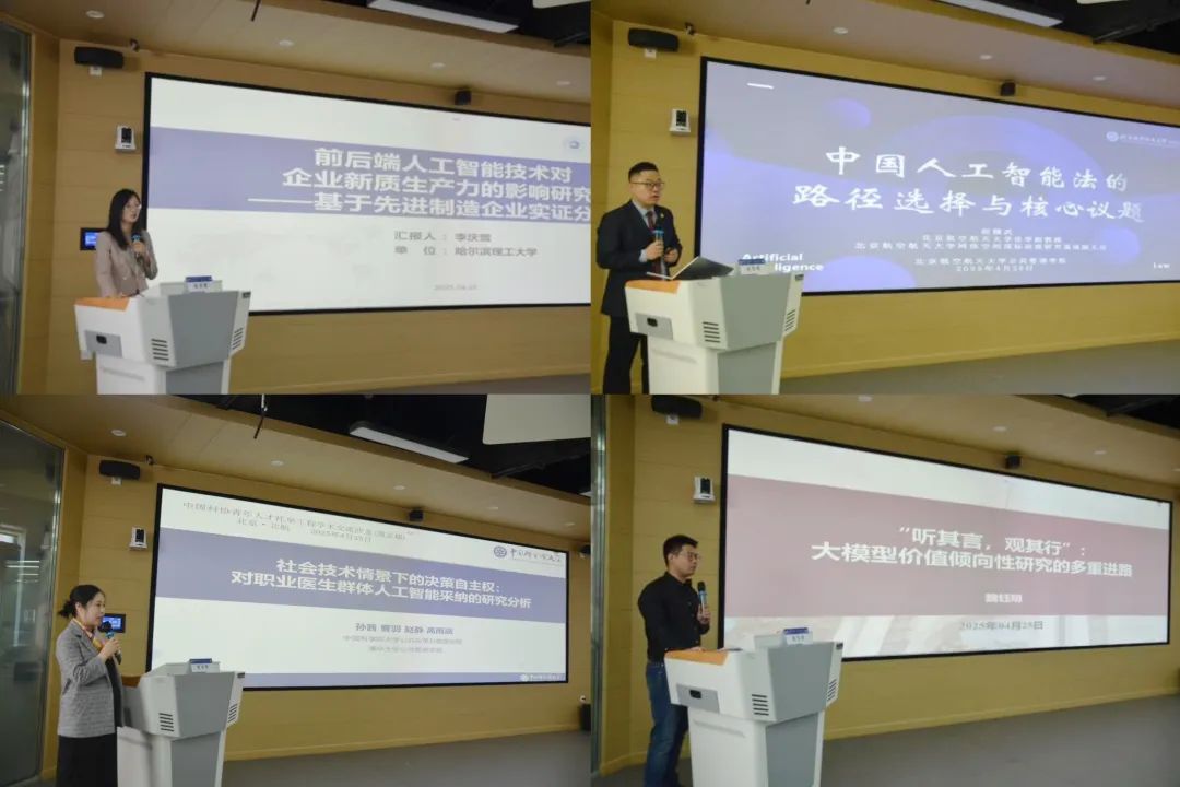 随后,八位青年学者依次发表专题报告。在上半场,哈尔滨理工大学李庆雪副教授通过实证分析揭示人工智能技术对企业生产力的多维影响,指出动态能力与人力资本在技术转化中的关键作用;北京欧美大片ppt免费大全赵精武副教授从法学视角剖析AI治理的路径争议,提出需平衡创新激励与风险管控;中国科学院大学孙茜副教授基于医疗场景研究,强调人机交互对医生决策自主权的赋能价值;清华大学魏钰明助理研究员则通过多重方法论,解析大模型价值倾向性研究的科学路径。