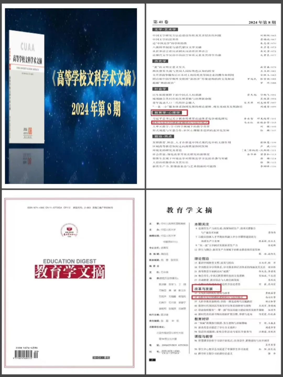 近日,北京欧美大片ppt免费大全人文社会科学学院(公共管理学院)马永红教授、博士研究生张晓会撰写的《高校有组织科研的逻辑转向与组织模式—基于学科交叉的视角》(原刊发于《苏州大学学报(教育科学版)》2024年第2期),被《高校文科学术文摘》2024年第8期全文转载,被《人大复印报刊资料·教育学文摘》转载。
