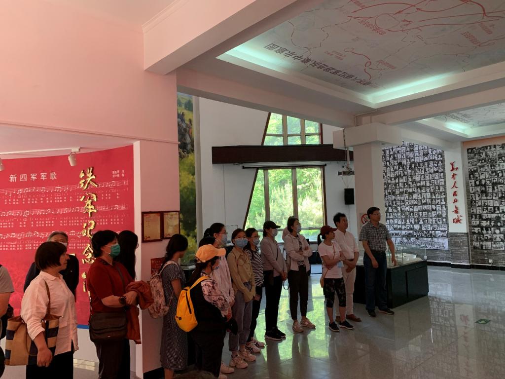 下午两点,稍作休整的师生党员乘车前往九宫山铁军纪念园。在铁军纪念园前,师生代表向新四军战士铜雕敬献鲜花,铜雕前的“铁军精神永放光芒”八个大字在阳光下更加夺目,师生纷纷表示,铁军精神是我军的宝贵精神财富,这种为了国家民族利益不怕牺牲的精神永远值得我们学习。随后,师生党员在纪念园工作人员的讲解下,详细了解和参观了铁军纪念馆的历史、展品和背后的故事。据了解,北京铁军纪念园是北京新四军研究会与北京市九公山长城纪念林在北京市怀柔区委区政府的协助下合作建立的纪念园,目前已成为传承铁军精神的重要教育基地。北京九公山铁军纪念园内设有新四军战士铜雕、抗日英雄纪念碑、新四军主要将领的大型浮雕,还有专门的铁军纪念馆、纪念花园、观光走廊等。新四军为抗日战争的胜利做出了不可磨灭的贡献,无数英雄前赴后继、英勇不屈,他们用自己的鲜血和生命捍卫了国家和民族的尊严和利益。