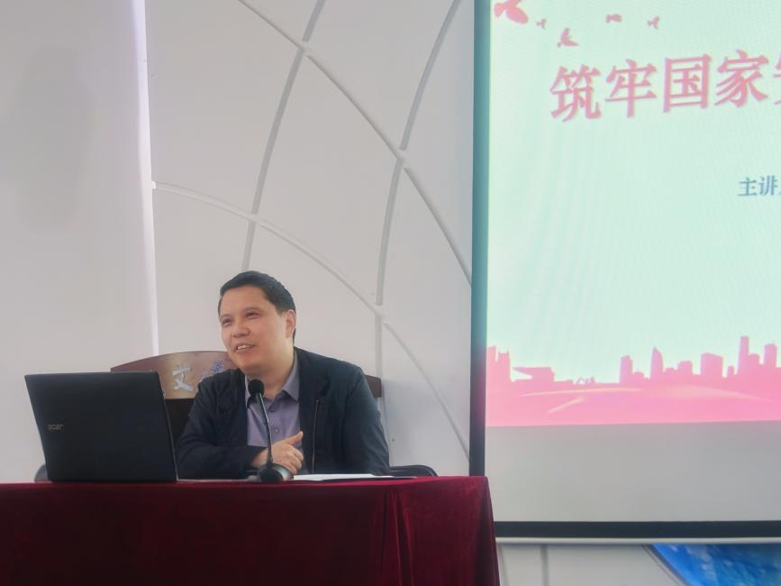 2025年4月24日下午,人文社会科学学院(公共管理学院)“铸魂育人”系列专题党课第7期于人文公管学院人文讲堂举行。我院党委书记王琪全做《筑牢国家安全防线,彰显党员使命担当》的专题讲座,深入探讨国家安全的重要意义与党员的责任使命。学院党委副书记方志、专职辅导员夏文静和学院180余位师生党员、入党积极分子参加学习。