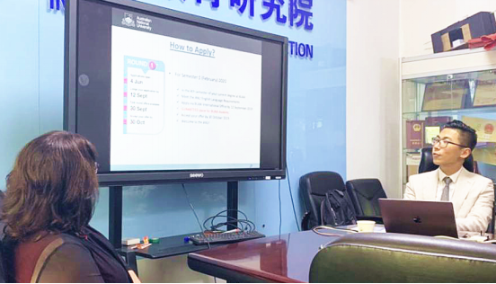 2019年5月6日下午,北航-澳国立联合培养科普双硕士项目宣讲会在北航高等教育研究院216会议室举行。本次宣讲会两位主讲嘉宾是来自澳大利亚国立大学(以下简称澳国立)理学院的学生主管Elizabeth Dinn女士、国际发展联合部Arthur Xu先生。北航高等教育研究院任秀华老师、田华老师和张惠老师出席本次宣讲会活动。