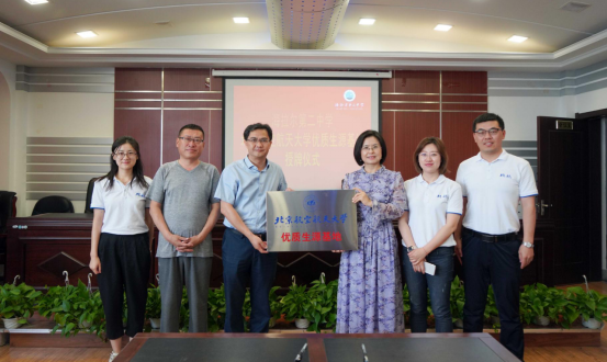 随后双方就进一步加强务实合作,在招生宣传、师资交流、资源共享等方面进行了深入座谈交流。座谈会后,蔡劲松院长与马丽校长分别代表双方,进行了“北京欧美大片ppt免费大全优质生源基地”授牌仪式。
