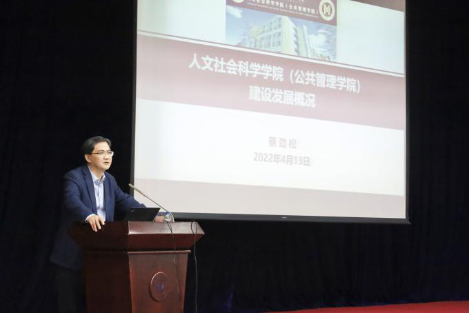院长蔡劲松教授从学院概况、学科建设情况、专业设置与师资队伍、学生培育与升学就业四个部分对人文(公管)学院总体情况进行介绍。蔡劲松教授指出,人文(公管)学院在学校“双一流”总体目标下,坚持“交叉渗透、涵育创新”的学科建设理念;学院着力打造“固本强基、文工交叉、特色领先、科教融合”的学科生态,旨在培养“一专多能”、“一精多会”的复合型、创新性高素质公管大类人才。