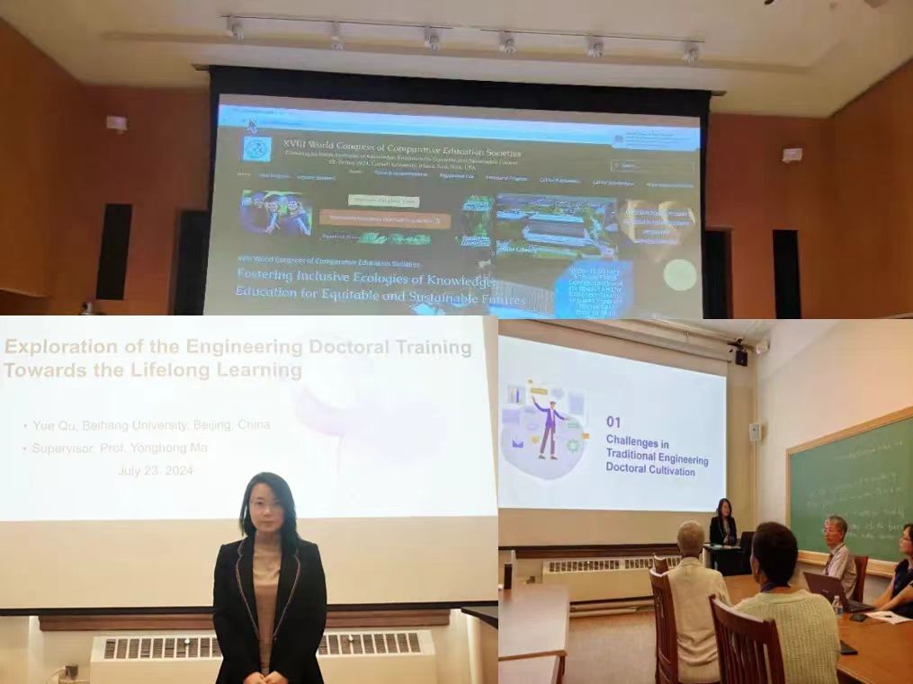 在大会的平行分论坛上,根据前期对工程博士培养的相关调研,博士生曲玥汇报了与马永红教授合作的论文“Exploration of the Engineering Doctoral Training Towards the Lifelong Learning”,分享了科技革命和工业转型给传统工程博士生培养模式带来的挑战。并从终身学习视角出发,指出工程博士生的培养不仅要聚焦理论知识和专业技能,还要注重培养其持续学习和适应社会需求及未来挑战的能力。本文合著作者马永红教授、博士生陈璀及博士生马烁然线上参会。