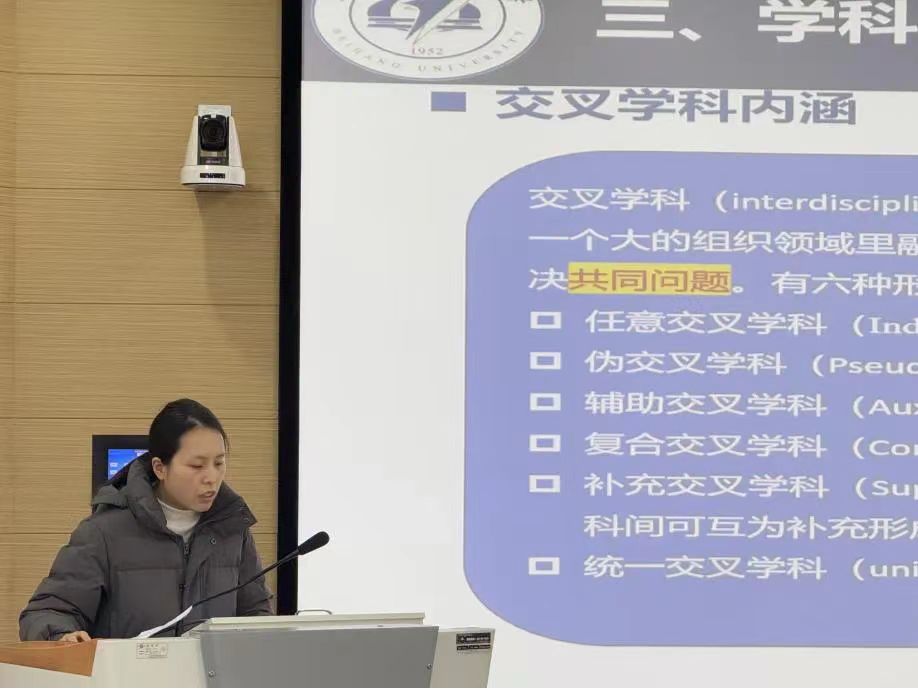 张晓会做题为《成功的学科交叉“奇点”从哪来?》的分享。文章以高校的学科交叉发展和学科共融共生的背景为出发点,提出我国高校在学科交叉建设过程中存在假交叉、表面交叉、不愿交叉、同质化交叉等问题;认为我国学科交叉成功的关键在于找到不同学科间的适配性“奇点”,并将这种“奇点”分为平行节点,突出节点,凹陷节点。通过实证研究发现,学科交叉被赋予“对社会需求和问题导向的敏感性和实用性”的重任,成功的交叉奇点关键在于“问题”,基于现实问题,应将不同学科领域的知识汇聚、协同,解决复杂实践问题并产生新知识或新学科;基于未来问题,运用学科交叉思维,利用知识资源共享优势,给予各学科知识最大延申张力和知识嵌入机会。由此提出通过跳脱个体局部利益,将学科看作完整的生态系统;克服传统学科发展惯性,主动打破自身围墙和排他天性等方式,推动学科交叉的进一步发展。