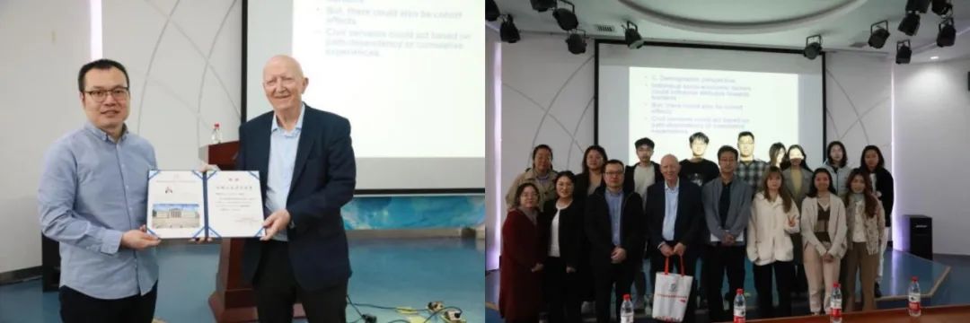 互动环节中,师生围绕行政负担的评估标准、跨国比较研究等议题踊跃提问,Christensen教授结合理论与实践逐一解答,现场学术氛围热烈。杨磊副教授代表学院向Christensen教授颁发“人文讲堂”荣誉证书。