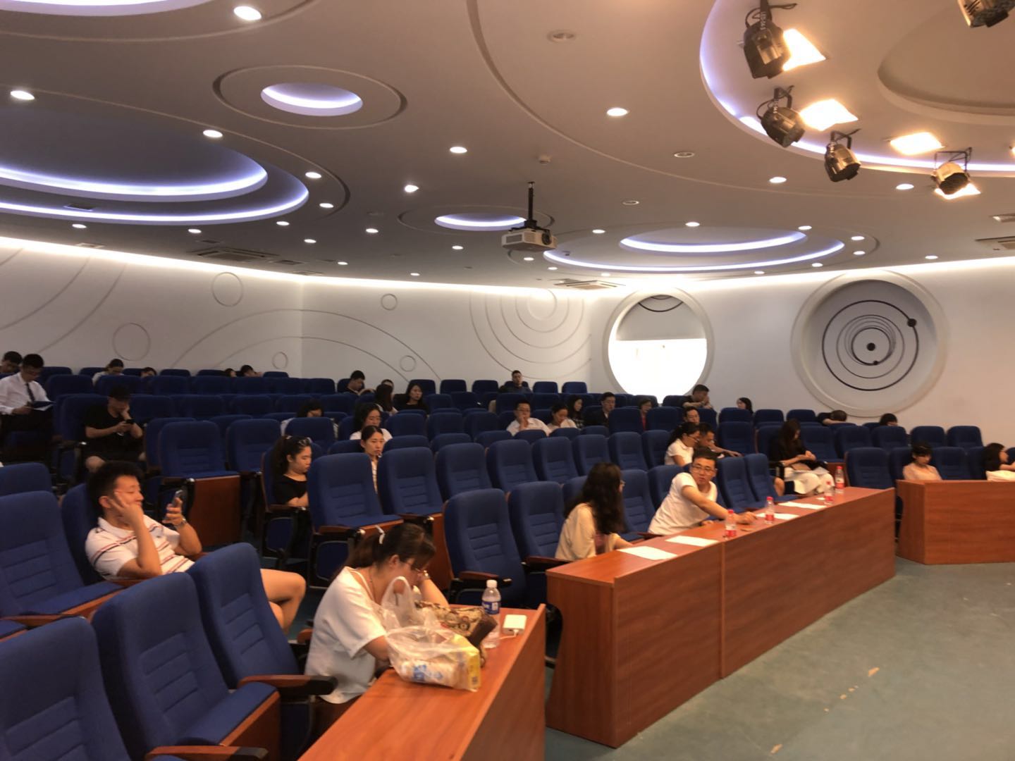 第三批提前面试延续着前两批的面试模式进行,考生朋友们需在人文讲堂签到,提交申请表、身份证复印件、毕业证书、学位证书复印件并审核无误后,陆续被叫到考场参加面试。