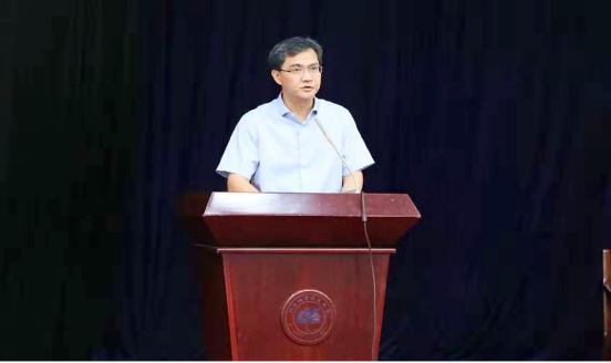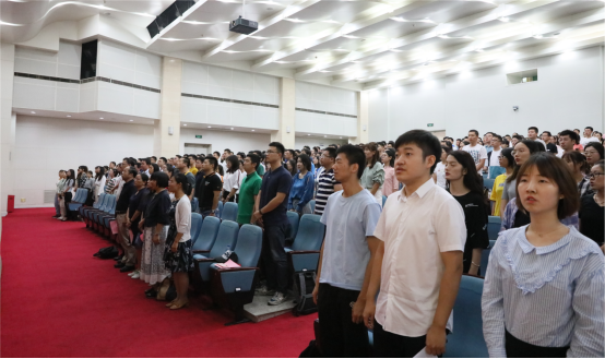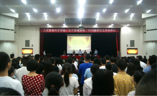 嘹亮的国歌拉开了开学典礼的帷幕。蔡劲松院长对517位研究生新同学的到来表示热烈的欢迎。蔡院长回顾人文公管学院历史,介绍学院发展近况。今年,学院共有517名研究生正式报到入学。其中,包括博士15人,全日制硕士91人,非全日制MPA公共管理专业硕士411人。至此,我院在校研究生首次突破千人大关,总数达到1248人,是在读本科生总人数的5倍多,已成为名副其实的人文社科公管类“研究型”学院。蔡院长指出人文社会学科承载着推动社会进步的责任,并以“四个追求”勉励同学们:一是,追求坚韧笃行的品格,制定一个“硬核”的研究生生涯规划,勇于面对挫折,面对挑战,面对困难,面对现实社会的变化与未来发展需求,塑造不断完善的自我;二是,追求至臻卓越的学养,勇于突破学科专业的边界,注重学科交叉,主动聚焦难题和学术前沿,找准学术发展方向,探索交叉领域和社会重大实践问题研究,创造原创性学术成果;三是,追求责任担当的情怀,将个人成长、发展与国家命运、社会未来紧密结合在一起,志存高远、开放包容,使自己的人生一步一步走向成熟;四是,追求进取不止的梦想,不满足于眼前或一时的点滴成绩业绩,以刻苦磨练的意志、开拓创新的姿态,追逐梦想、放飞梦想、成就梦想。让我们一起共勉,为承担好新时代赋予我们的使命作出更大努力。