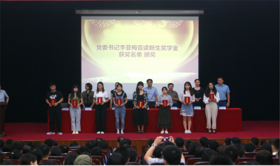 学院党委书记李亚梅宣读新生奖学金获奖名单,她向获得奖学金的同学表示祝贺,并鼓励大家潜心学习,勤于科研,不断提升自我,争创更大成绩。学院领导为新生奖学金获得者颁奖。