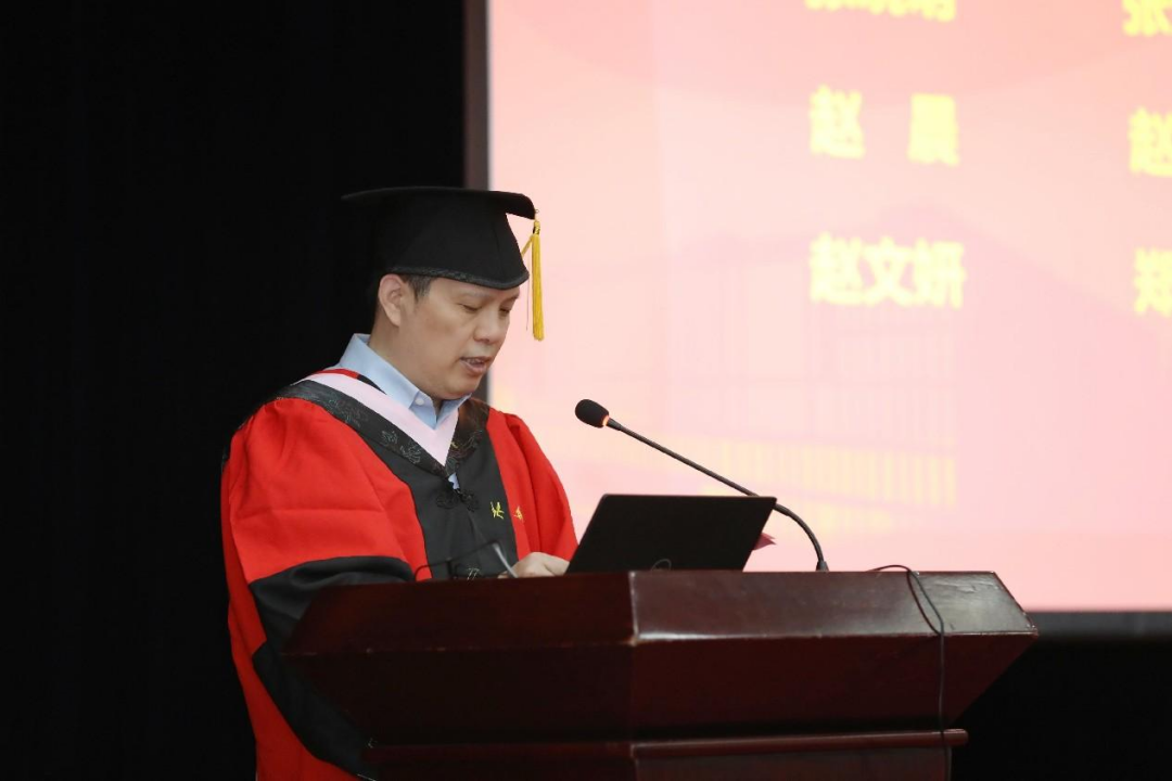 硕士毕业生代表留伊丹同学感谢学院领导、老师们的辛勤付出,感谢同学们的陪伴鼓励,感谢家人的支持。她表示,两年的研究生学习经历让她收获了知识与技能,更培养了独立思考、协作等能力。她鼓励同学们带着人文精神,以热爱之名,赴星辰之约,创造属于自己的辉煌,祝愿大家前程似锦。